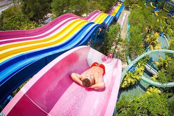 Aerobat, Airbag, AK Academy, AK Discovery, AK Splash, A-Maze, Atan’s Jump, Banana Flip, Bull Lee, Coco Climb, Dunk Tank, Discovery Dig, Gecko Tower, Family Trail, Go Bananas, Family Twister, Jungle Swinger, Kite Flyer, Jumping Jack, Hill Rider, Lazy River, Monkey Business, Mega Drop, Monkey School, Play House, Slingshot, Super Looper, Speed Racer, The Longest, Tots Pool, Tubby Racer, Tubby Rapids, Tubby Tunnel, Three Sixty, Wave Ball and Zoom Bug.