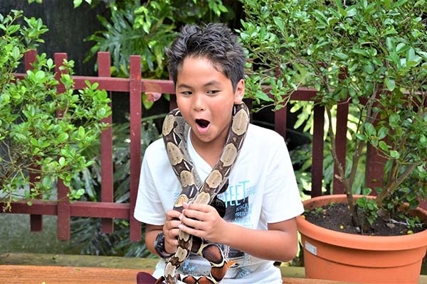 Be welcomed by the beautiful and colourful parrots at the entrance, and walk amongst birds and deers roaming freely and eating nuts and berries of the palm of your hands, the whole park is designed to bring you closer to the animals. Some animals require more precautions though, such as the mighty python or the cheeky monkeys – our trainers will be there to guide you in your walk through the park with these animals